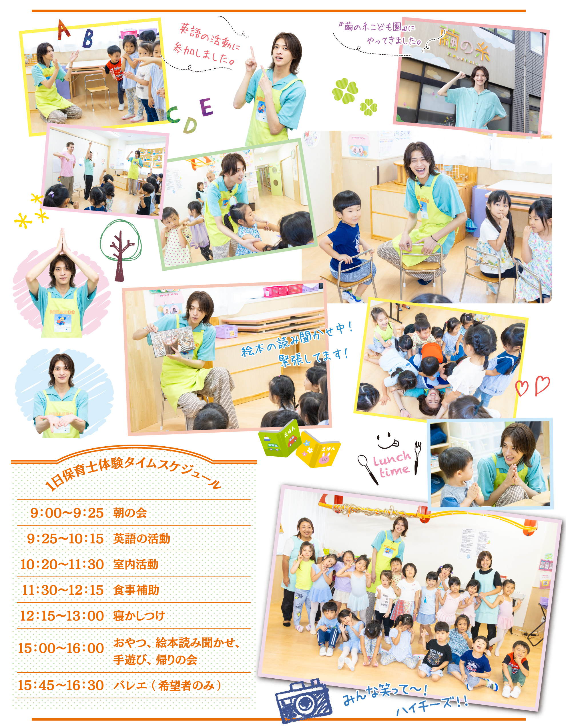 イケメン俳優を保育士・幼稚園教諭体験させてくれる保育園・幼稚園募集中♪